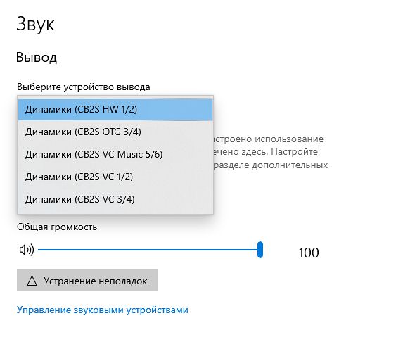 После установки фирменного драйвера iCON Pro Driver в Windows появляется 5 звуковых устройств. Это позволяет использовать разные устройства в звуковых приложениях и раздельно регулировать их громкость и накладывать эффекты.