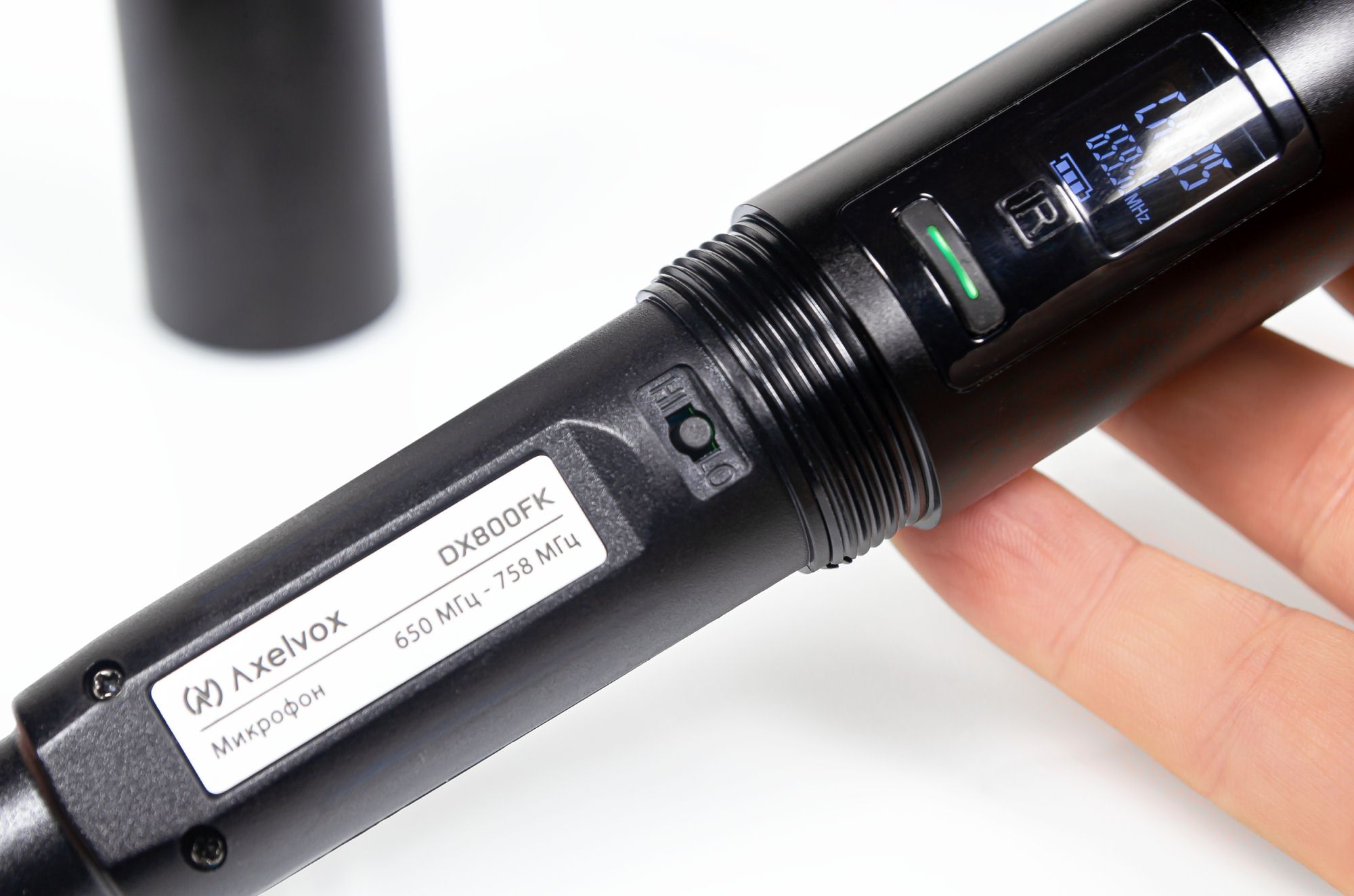 Радиосистемы Axelvox всегда славились удобными ручными передатчиками. В отличие от многих других недорогих моделей, их микрофоны имеют полностью металлический корпус. Хотя микрофон и получился увесистым, его масса распределена равномерно, позволяя комфортно удерживать его в руке. Для того, чтобы микрофон не катался по поверхности в комплекте идут силиконовые колечки. Они также защищают от случайных ударов микрофона, когда ведущий или исполнитель кладут включённый микрофон на стол или другую поверхность.