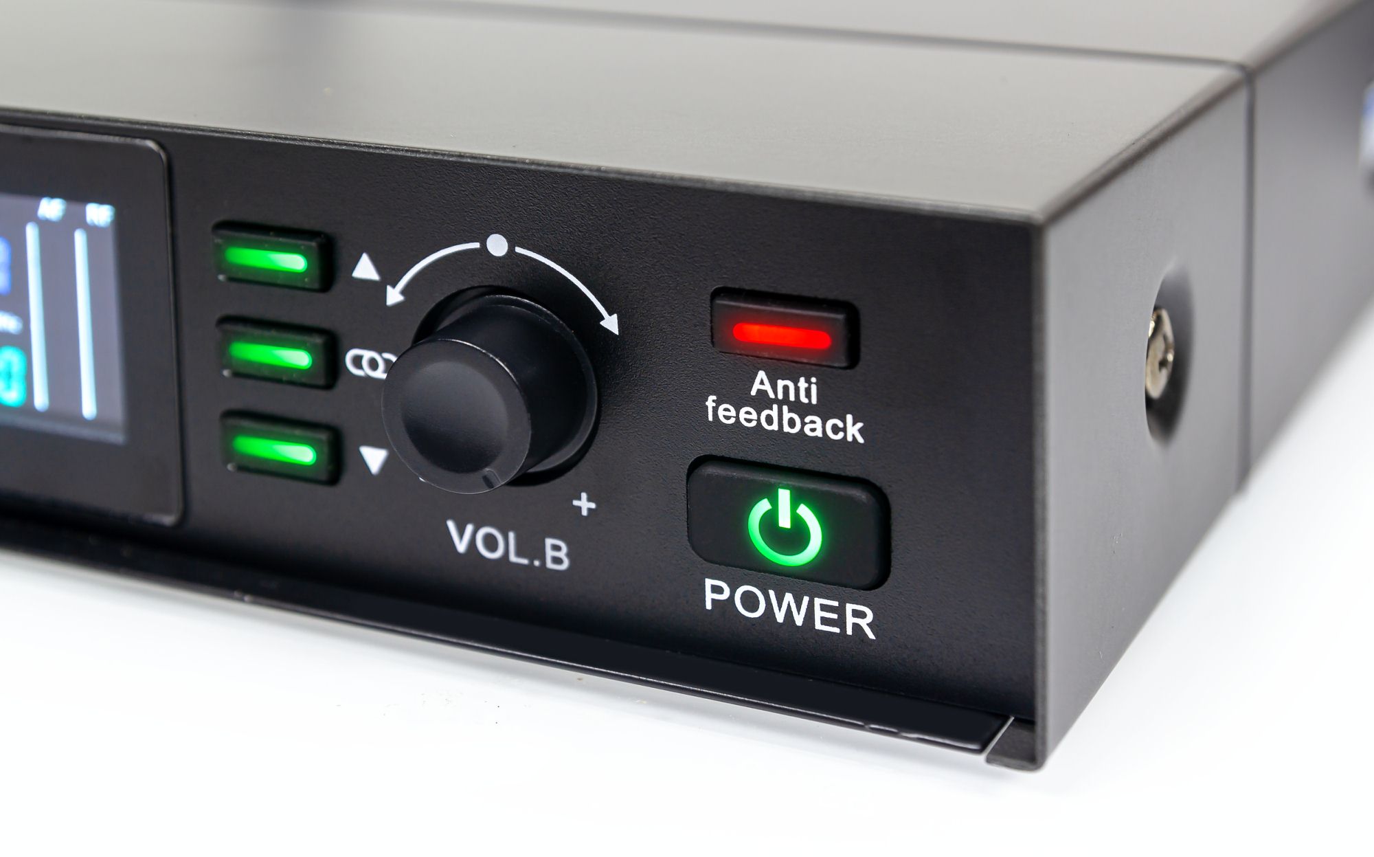 Безусловно, функция подавления обратной связи в Axelvox DX800 представляет собой одну из наиболее интригующих возможностей данной системы. В частности, особый интерес вызывает ее техническая реализация. Однако при тестировании стало очевидным, что она демонстрирует ограниченную применимость в контексте вокального исполнения. Это обусловлено тем, что при обработке непрерывного звукового сигнала артефакты, генерируемые функцией подавления обратной связи, становятся слишком заметными и негативно влияют на звучание. В качестве наиболее целесообразного применения данной функции является речь спикера или ведущего. Как правило, в них отсутствуют протяженные звуки, и работа алгоритмов «Anti feedback» не так заметна на слух.