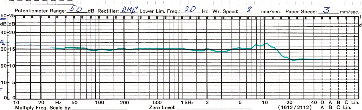 Производитель также предлагает ознакомиться с измерением микрофона лабораторией НИКФИ (Научно-исследовательский кинофотоинститут). Из графика можно видеть ровный охват всего диапазона частот с подъёмом на ВЧ приблизительно на 4 дБ. Подобная характеристика типична для классических широкомембранных вокальных микрофонов. Так как высокие частоты затухают очень быстро и сильно зависят от направления, этого подъема на ВЧ не будет, если микрофон находится под небольшим углом или источник звука не ориентирован в точности по центру мембраны.