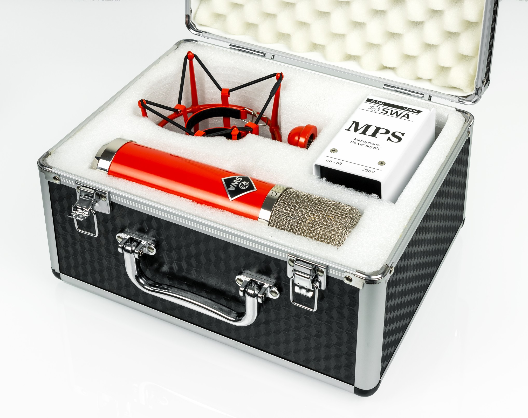 Теперь настала очередь микрофонов под маркой SWA. После долгих лет исследований и прототипирования, в 2025 году в производство и продажу поступил The Red One — широкомембранный студийный конденсаторный микрофон. Что интересно и возможно даже уникально — он полупроводниковый, но с собственным блоком питания, как у ламповой классики. А применённая бестрансформаторная схема микрофона гарантирует естественный тембр звука.
