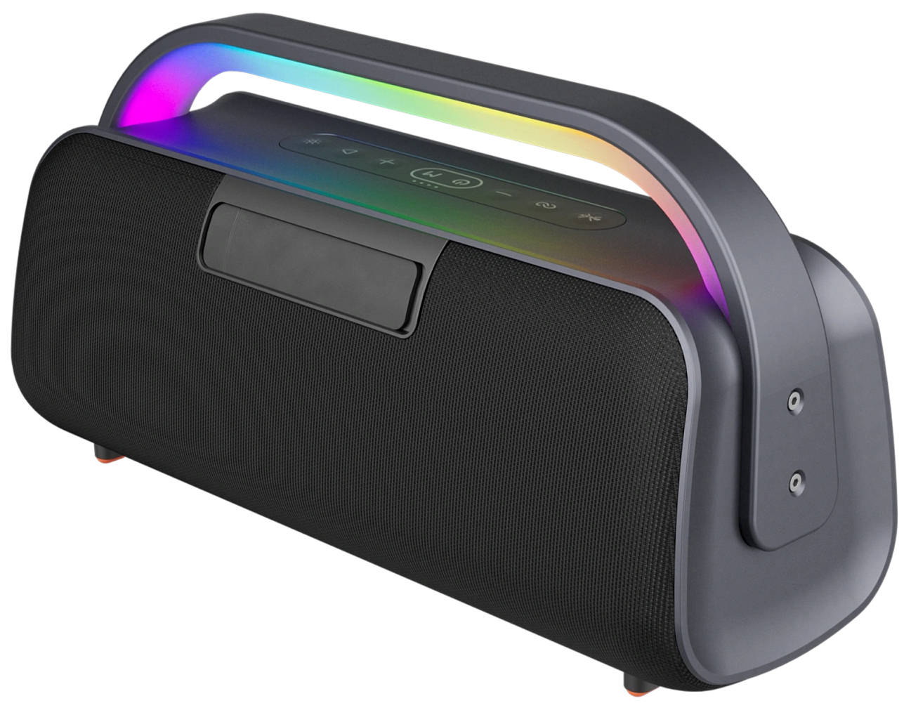 Новинка с мощностью 240 Вт обеспечивает 6.5 часов автономной работы, подключается через Bluetooth 5.3, имеет встроенную DSP обработку и поддерживает различные звуковые Hi-Fi форматы. Продукт может похвастать влагозащитой по стандарту IPX4, что позволяет устройству выдерживать капли дождя и брызги воды. Колонка оснащена двумя НЧ-динамиками (3.5”), двумя ВЧ-излучателями (2.25”), а также располагает разъёмом AUX и портом USB-A, обладает такими режимами как TWS и X-Bass и поставляется с RGB-подсветкой.