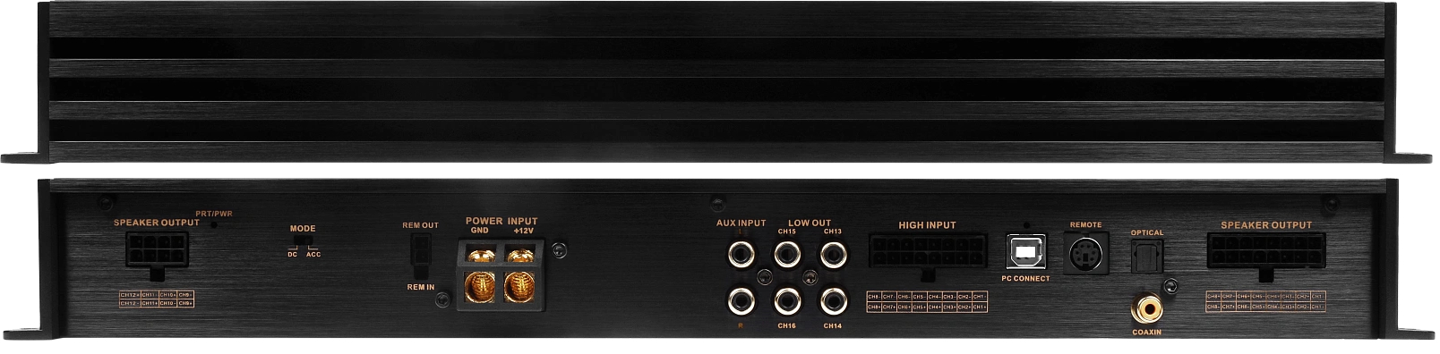 Новинка оснащена 12 каналами усиления (по 80 Вт в 4 Ом) и имеет 16 DSP каналов. В остальном, как и модель 12 8.80, устройство обладает четырьмя каналами свободной маршрутизации и восемью входами высокого уровня. Также есть пара RCA для AUX, оптический вход SPDIF и поддержка Bluetooth 5.0 APTX HD. Кроме этого, предусмотрен ЦАП/АЦП (Texas Instruments Burr-Brown Audio PCM 3168), расширенный частотный диапазон более 40 кГц в сочетании с пониженным уровнем искажений с помощью технологии Ultra HD Class D и встроенной обратной связи.