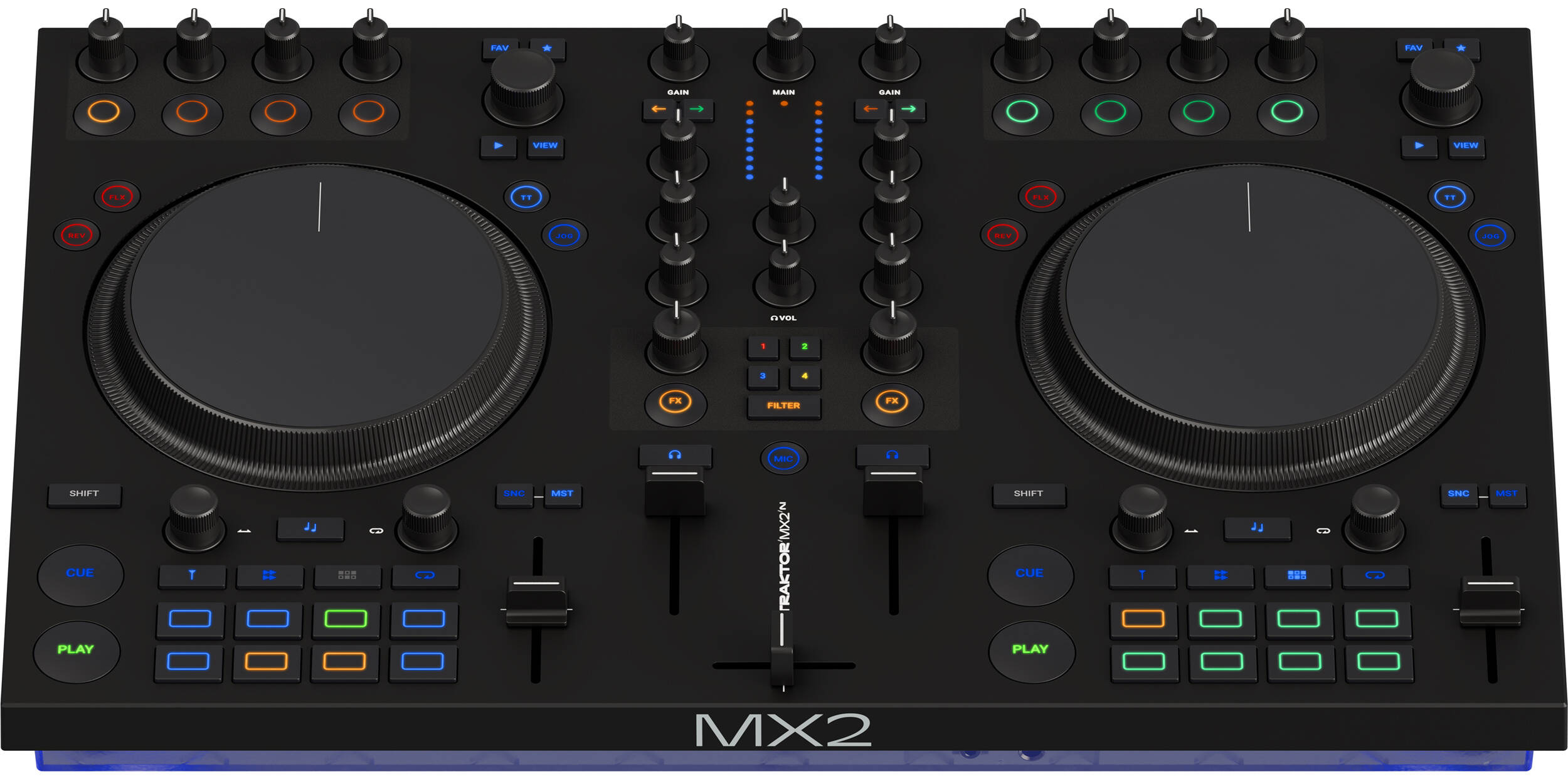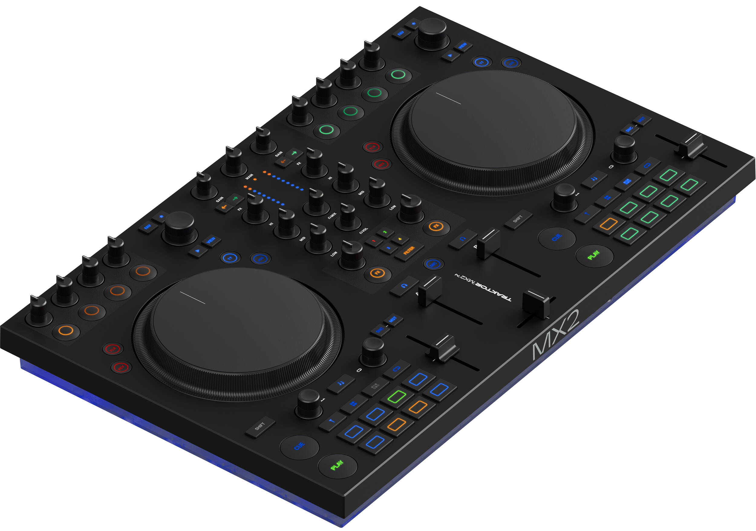 Устройство предлагает 16 RGB-пэдов для работы с метками быстрого доступа, стемами, лупами или в качестве проигрывателя паттернов. Контроллер имеет два сенсорных джога с дополнительным режимом Turntable. Отмечается, что корпус модели обладает специальной подсветкой для визуальной информации, например, когда заканчивается трек. Кроме того, Traktor MX2 поставляется с полной версией программного обеспечения Traktor Pro 4 и и бесплатной двухмесячной подпиской на Beatport Streaming.