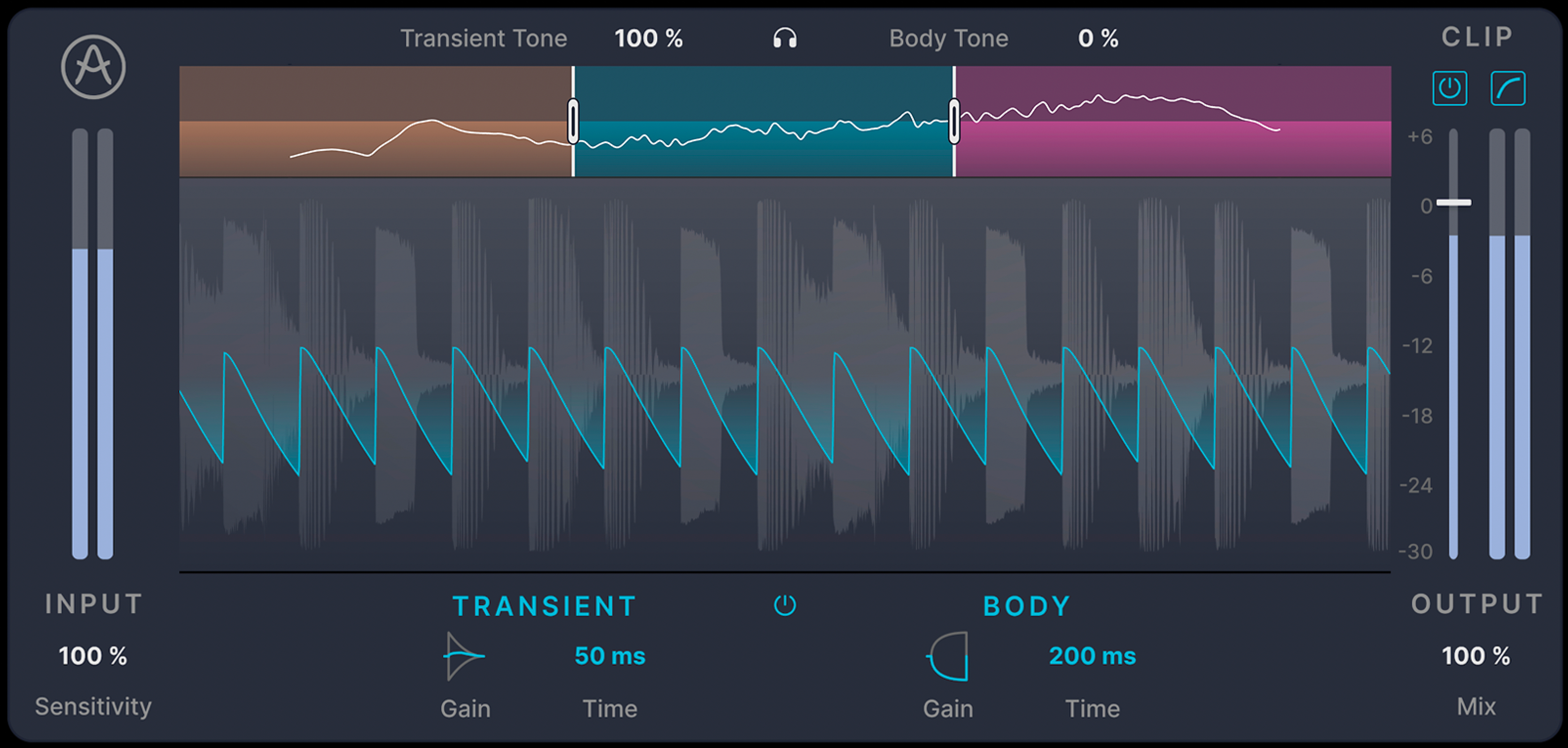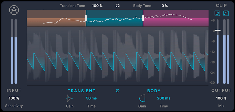 Новинка разделяет обработку транзиентного звукового сигнала на две отдельные части: Transient и Body. Пользователям доступен параметр усиления для настройки баланса уровня начальной точки атаки и затухающей части звука. Также, плагин позволяет настраивать время атаки и сустейна, чтобы добавить плотности или уменьшить «мутность», например, выделить малый барабан, усилить гулкий бас или добавить объёма тонко звучащему инструменту. Продукт поставляется с набором пресетов, обладает интуитивно понятным интерфейсом и может похвастать встроенным Soft/Hard клиппером.