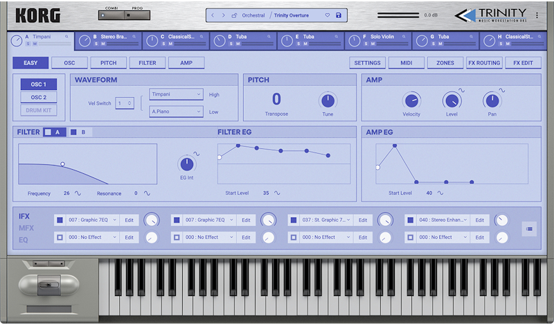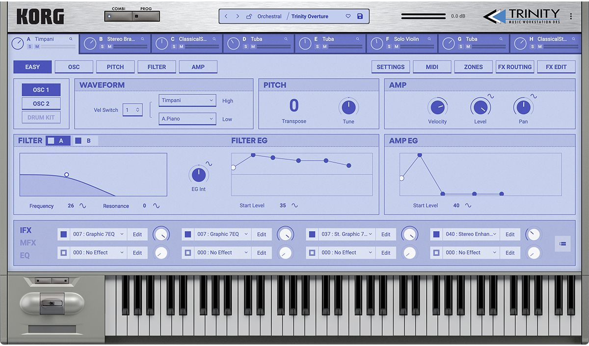 Первая новинка шестой версии коллекции представляет из себя синтезатор TRINITY, оригинал которого выпускался в 1995 году и отличался футуристическим графическим сенсорным интерфейсом TouchView, а также высококачественным PCM-звучанием.