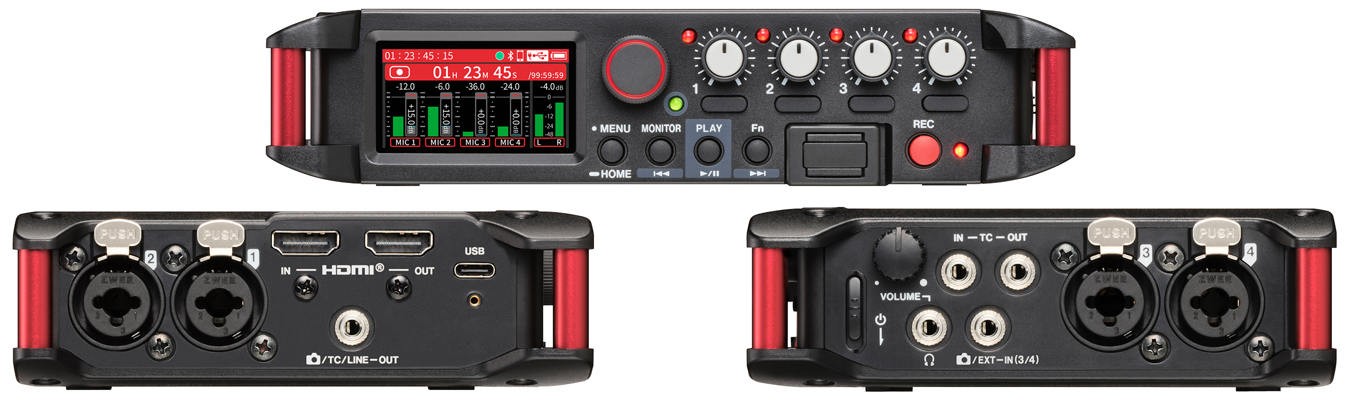 Новинка поставляется в компактном алюминиевом корпусе со специальным винтовым креплением. Устройство оснащено четырьмя комбинированными XLR/TRS входами с предусилителями Ultra HDDA (EIN -127 dBu), а также обладает высоким динамическим диапазоном (133 дБ) и суммированным стерео-миксом с возможностью одновременной записи на карты памяти SDXC. Кроме этого, пользователи смогут направлять звуковой сигнал на камеру или для мониторинга на съёмочной площадке с помощью встроенного микшера (4x2).
