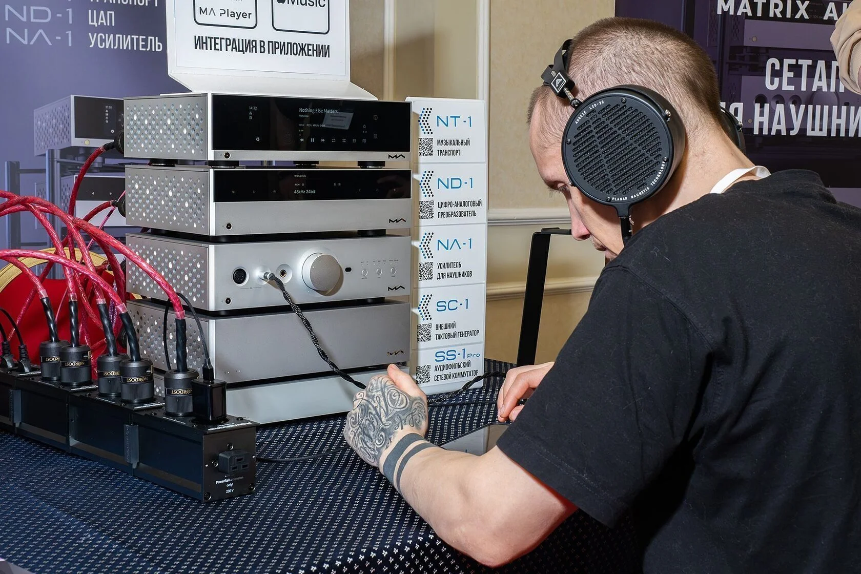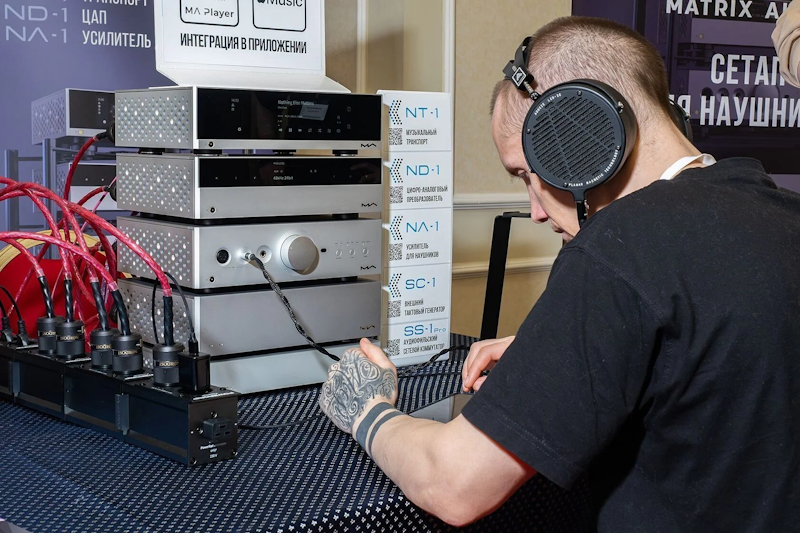 Громкой премьерой стал сетап на компонентах Matrix Audio серии N, впервые показанный в России. Это универсальное решение «все в одном», объединяющее цифровой транспорт, ЦАП и усилитель с функцией преампа.