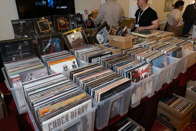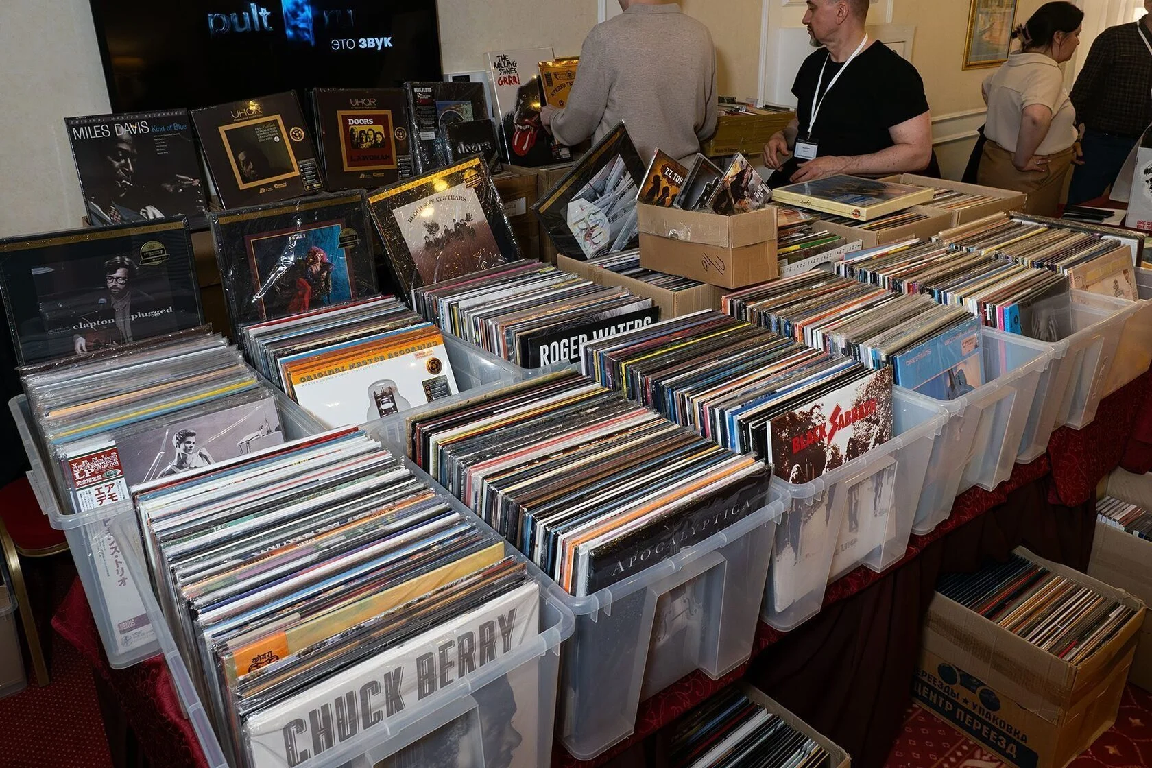 В холле третьего этажа развернулся виниловый маркет — здесь посетители выбирали как свежие релизы, так и редкие коллекционные издания.