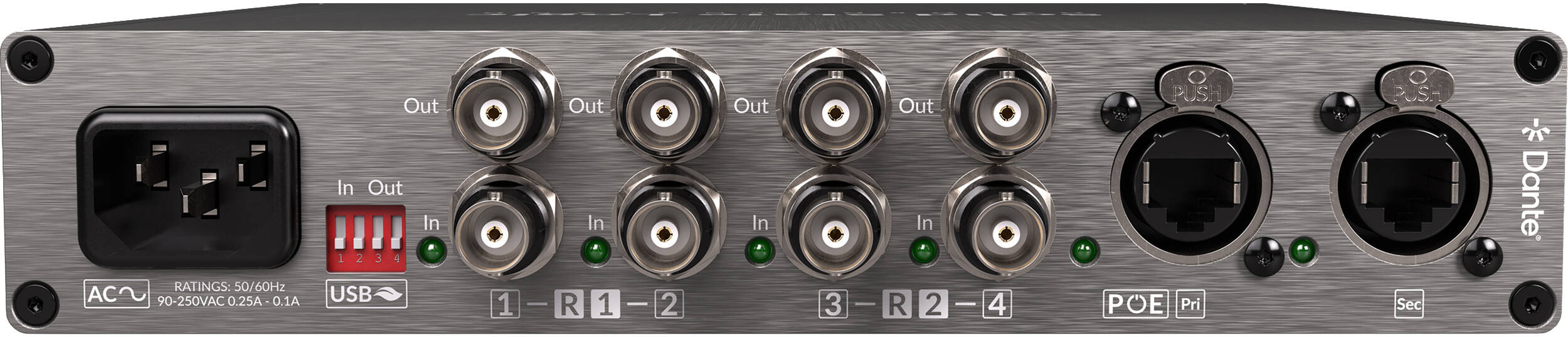 Продукт способен обеспечить до 192 каналов и двунаправленную передачу звука между любыми двумя форматами (MADI/Dante/USB), что позволяет объединять несколько устройств, подключенных к MADI, в сеть Dante, или для записи и звукового транслирования большого количества каналов через USB 3.0. Стоит отметить, что разделённый звуковой сигнал может быть направлен на третий формат. Новинка может похвастать полноценной совместимостью с Dante AoIP с поддержкой AES67 и ST 2110 (с DDM), а также задержкой Dante всего 0.25 мс и синхронизацией как с MADI, так и с Dante.