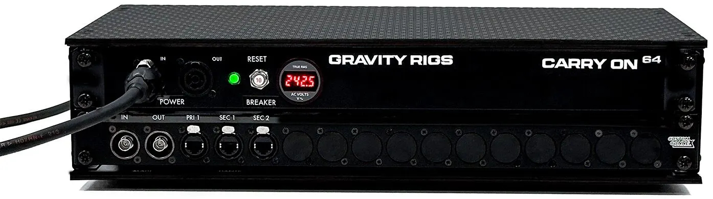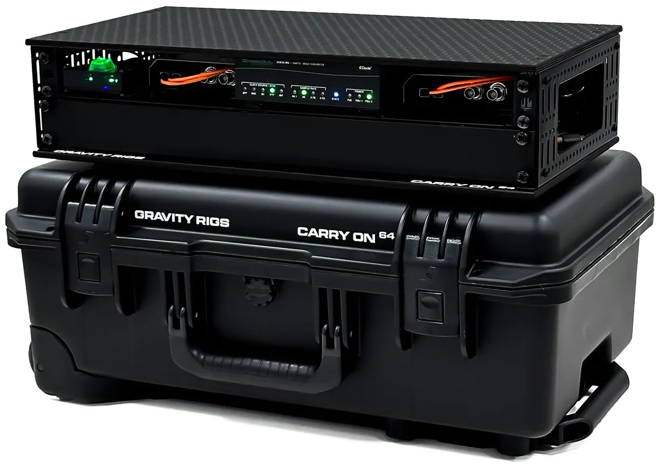 После выпуска версии на 24 канала, компания Gravity Rigs представляет профессиональную систему для гастролей, обеспечивающую 64 канала и расширяющую серию Carry On.