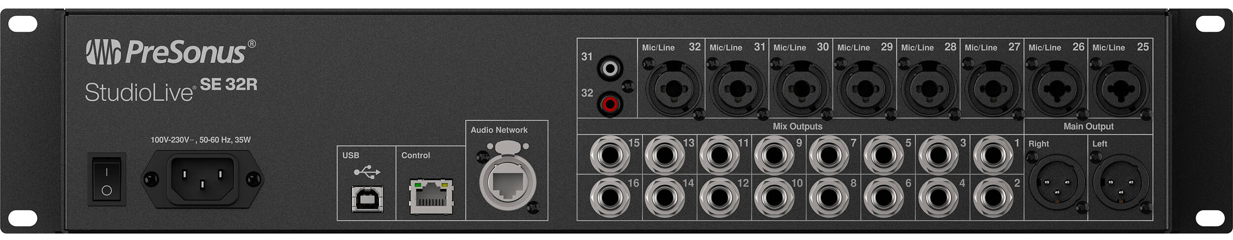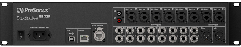Как и версия на 18 каналов, модель SE 32R имеет поддержку протокола Milan, обеспечивающего бесшовную интеграцию с концертными стейдж-боксами NSB, персональными мониторными микшерами EarMix 16M и другими микшерами серии StudioLive Series III. Другие возможности устройства: дистанционное управление микшированием и автономное редактирование через Universal Control; персональное мониторное микширование с помощью Wheel of Me через приложение QMix-UC; бессрочная лицензия на Fender Studio Pro; автономный режим, режим мониторного микшера или режим стейджбокса; переключение звуковых источников по каналам (аналоговый/USB/SD/AVB).