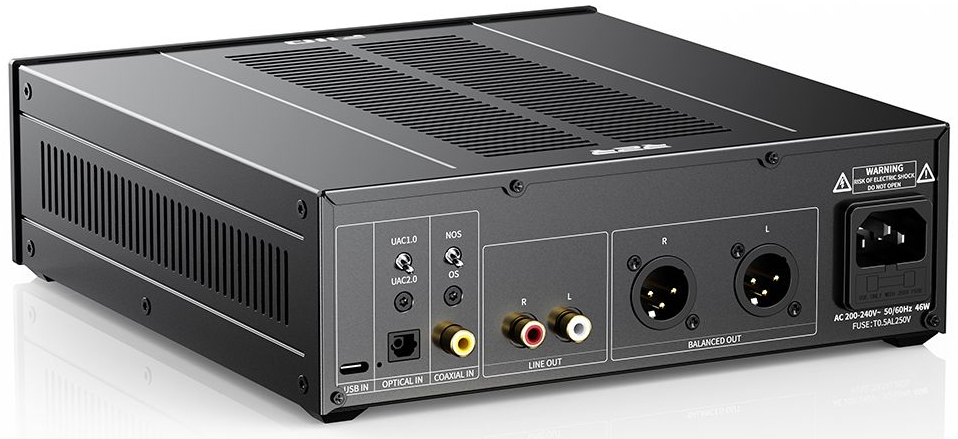 Новинка может похвастать четырьмя лампами JJ Electronic E88CC, а также четырьмя резисторными схемами собственной разработки FiiO. Продукт оснащён переключателем NOS/OS на задней стороне для двух режимов работы: без передискретизации (NOS) и с передискретизацией (OS). Для подключений предусмотрено три цифровых входа: USB-C, коаксиальный и TOSLINK (выбираются с помощью переключателя на передней панели). Кроме этого, предлагаются аналоговые разъёмы, включая пару RCA и балансные XLR. ЦАП имеет малошумный линейный блок питания 46 Вт с тороидальным сетевым трансформатором и располагает переключателем UAC1/UAC2 для обширной совместимости с различными устройствами.